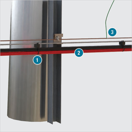 Les brides de câbles sécurisent et gèrent les câbles de gros calibre nécessaires à l'extrémité de la chaîne de distribution de courant continu pour alimenter les onduleurs et les batteries de stockage. En cas de court-circuit, ces brides maintiennent les câbles en place, prévenant ainsi tout risque de dommage aux personnes et aux biens. Ils ont été testés conformément à la norme IEC 61914, la dernière norme de test mondialement reconnue.