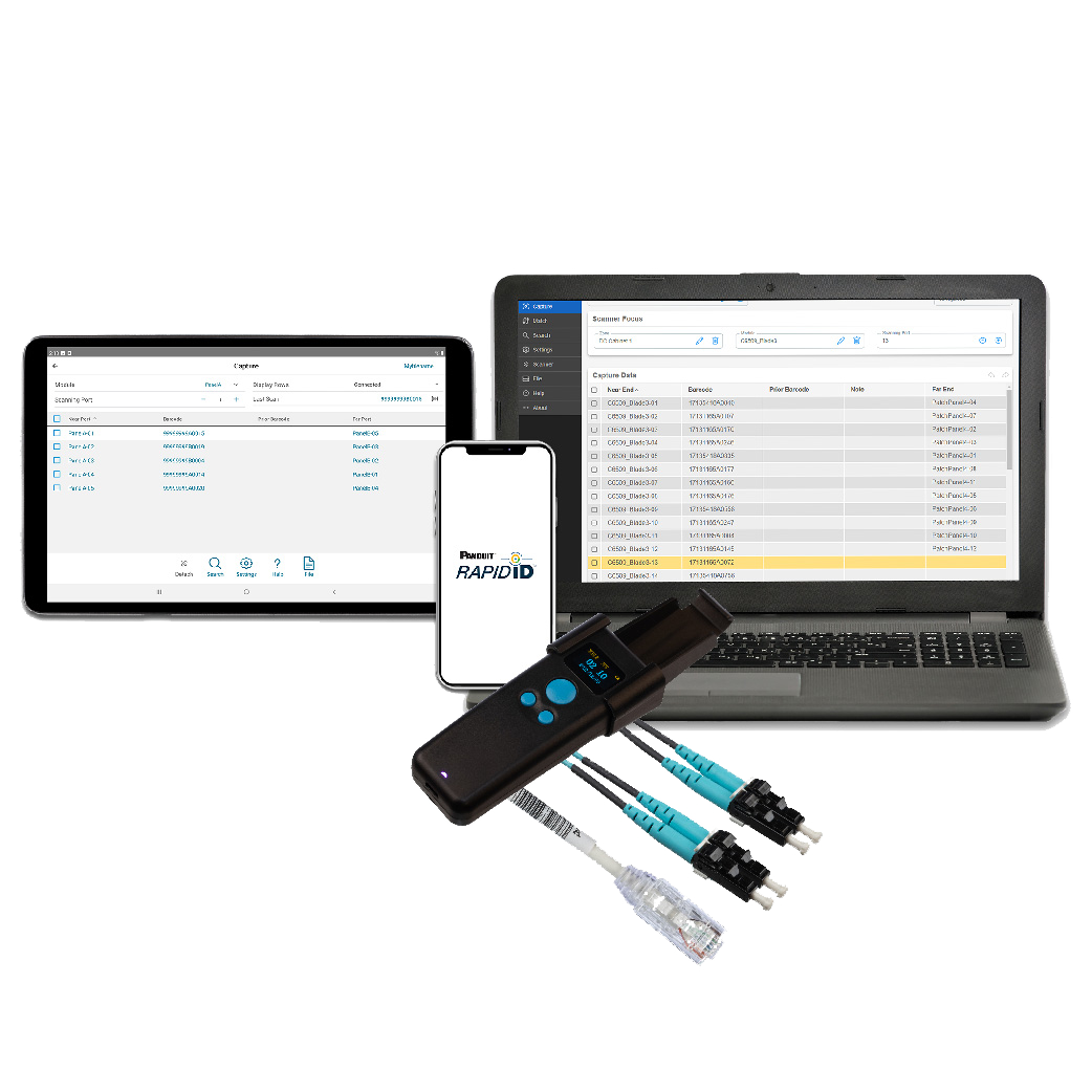 RapidID™ automatise le processus de documentation des câbles, qui demande beaucoup de temps et est source d'erreurs, ce qui permet de placer et de tracer les câbles et les cordons de raccordement plus rapidement et plus facilement. Il s'agit d'une alternative pratique aux approches manuelles traditionnelles qui convient parfaitement à la construction d'une nouvelle salle de télécommunications, à la localisation du câblage installé ou au remplacement d'un commutateur réseau.